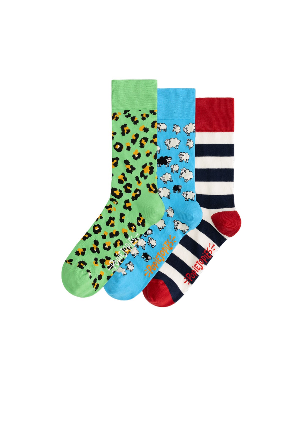 Voor alle Popiejopies met keuzestress hebben we een funcky 3-pack ontwikkeld. In deze kleurrijke pack vindt je 3 paar Popiejopies in de prints: Pittige Panter, Eigenwijze Schapen en Streepje Voor. Deze designs van Nederlandse bodem geven je humeur een flinke dosis positiviteit en creëren een echte showstopper. Gemaakt van zachte, ademende materialen die je voeten de hele dag in de watten leggen.