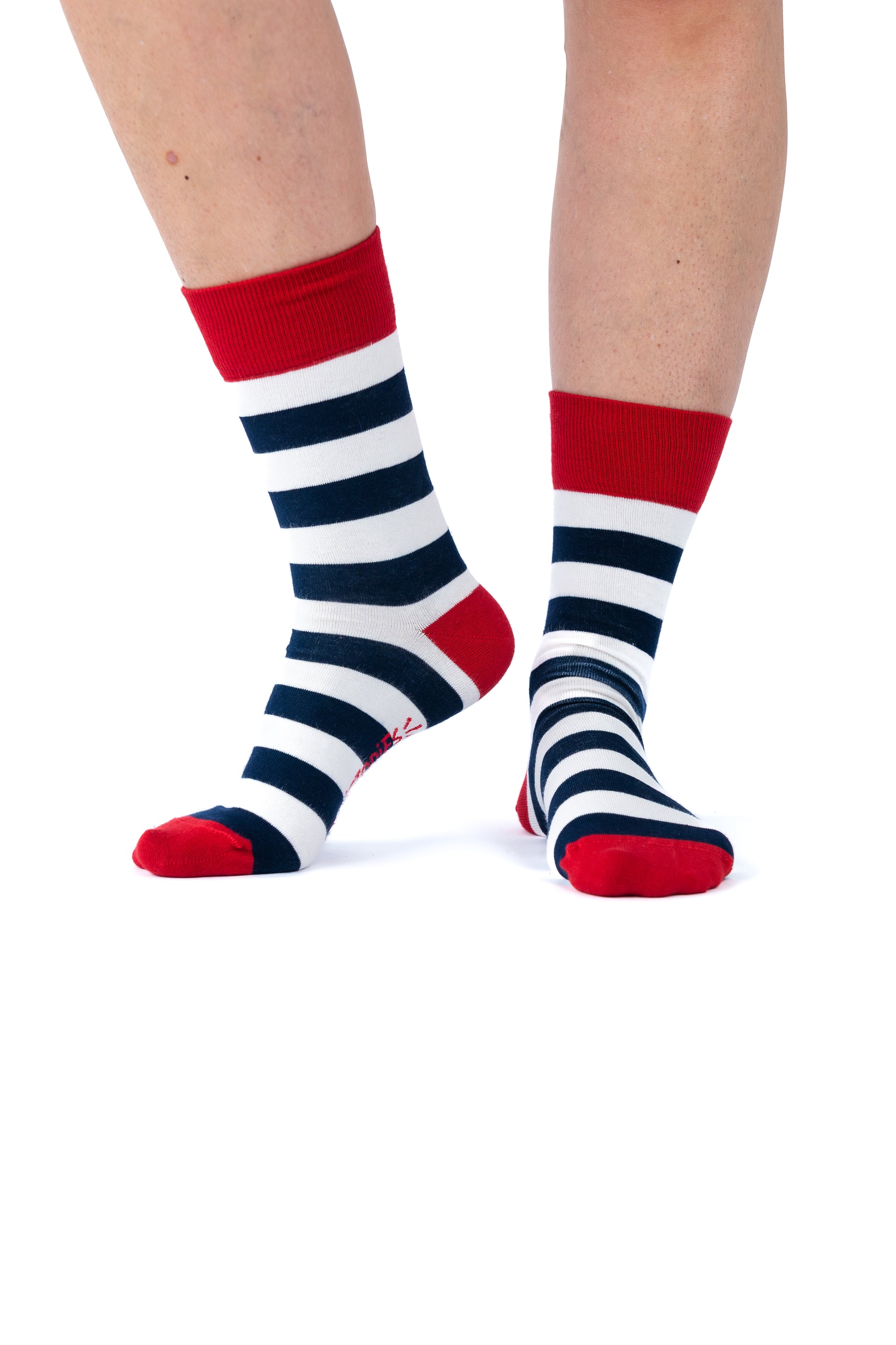 Maak je sokkenlade blij met de Popiejopies Streepje Voor sokken! Deze vrolijk gestreepte sokken in de kleuren rood-wit-blauw zijn niet alleen stijlvol, maar ook een echte moodbooster. Ze zorgen voor een instant glimlach zowel bij jou als bij de mensen om je heen. Gemaakt van hoogwaardige materialen waarmee ze jou de hele dag door comfort bieden.